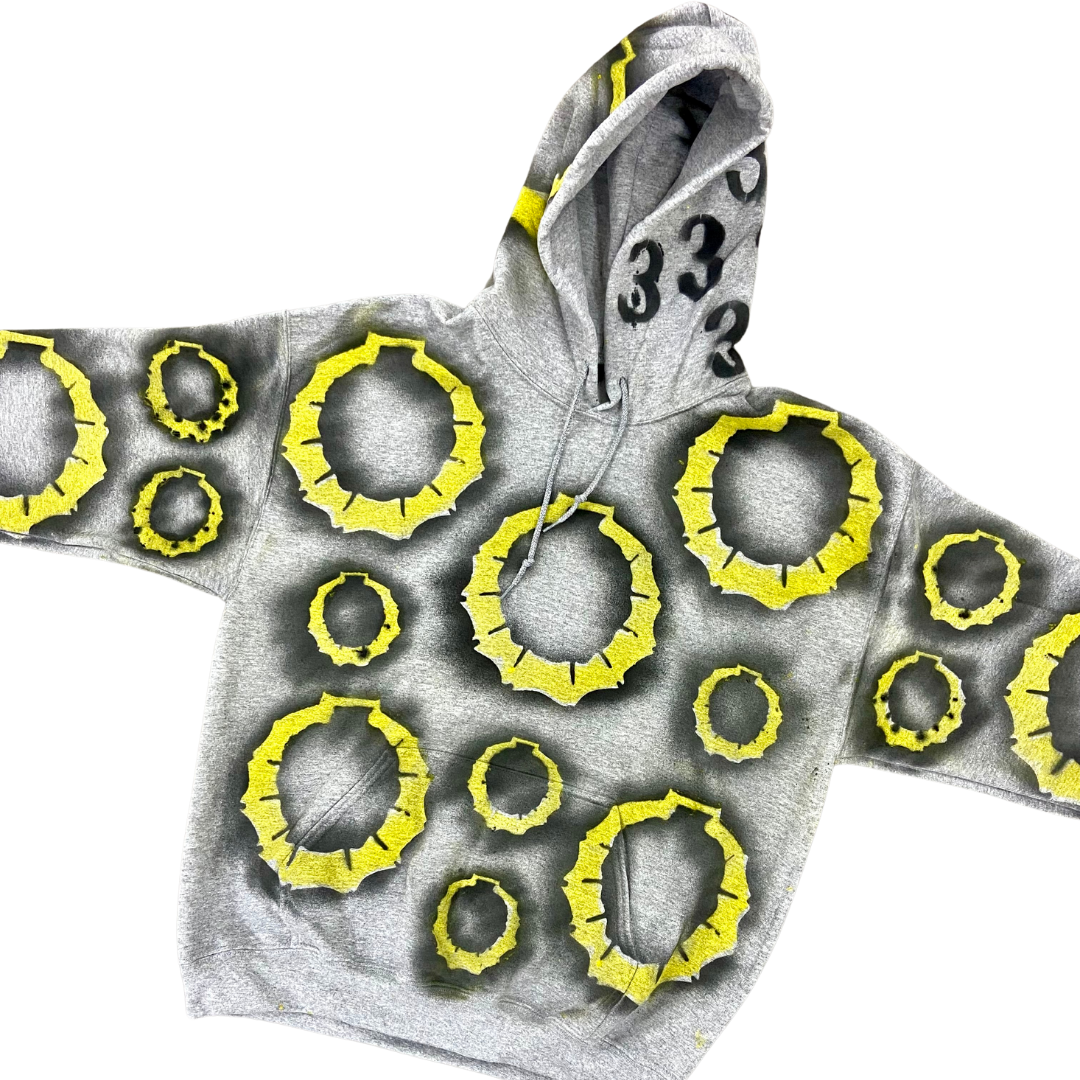 Each unisex sweatshirt is a one-of-a-kind, spray-painted wearable masterpiece.